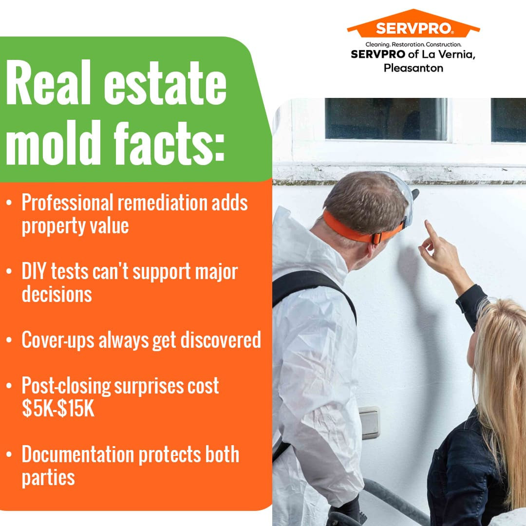 SERVPRO of La Vernia, Pleasanton professionals note that many transaction complications stem from preventable misunderstandings about mold testing, remediation, and disclosure requirements. The company's experts have identified five prevalent myths that consistently create problems for both buyers and sellers in the local market.